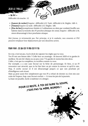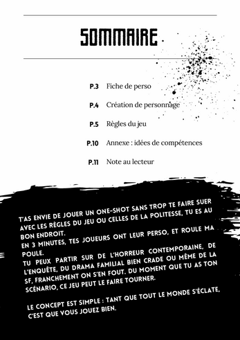 Au programme : règles de combat rapides, création de personnage express, exemple d’ennemi, annexe de compétences et philosophie essentielle… Le reste est entre les mains du MJ.